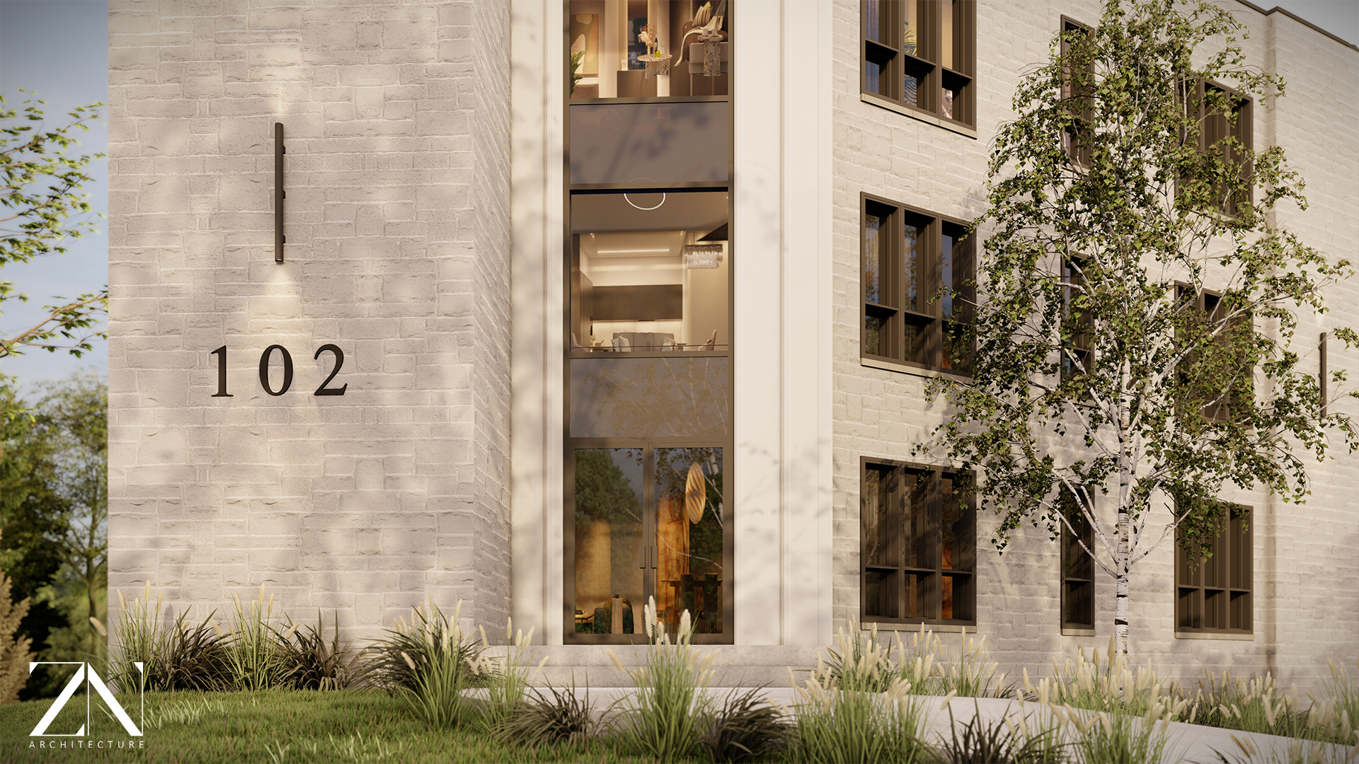 Ce bâtiment résidentiel incarne l’essence d’un style scandinave modeste et épuré, où simplicité rime avec élégance. Sa volumétrie sobre et ses détails raffinés s’unissent à une matérialité chaleureuse, dominée par la pierre pâle et les revêtements métalliques aux doux tons crème. L’architecture respire l’harmonie, la tranquillité et la fonctionnalité, deux valeurs fondamentales de l’architecture nordique. Les ouvertures généreuses, judicieusement réparties, permettent une belle lumière naturelle à l’intérieur des logements, tout en créant un dialogue visuel apaisant avec l’environnement arboré. Ce projet résidentiel offre une approche architecturale épurée et élégante, pensée pour s’intégrer avec sensibilité au contexte paysager et urbain.