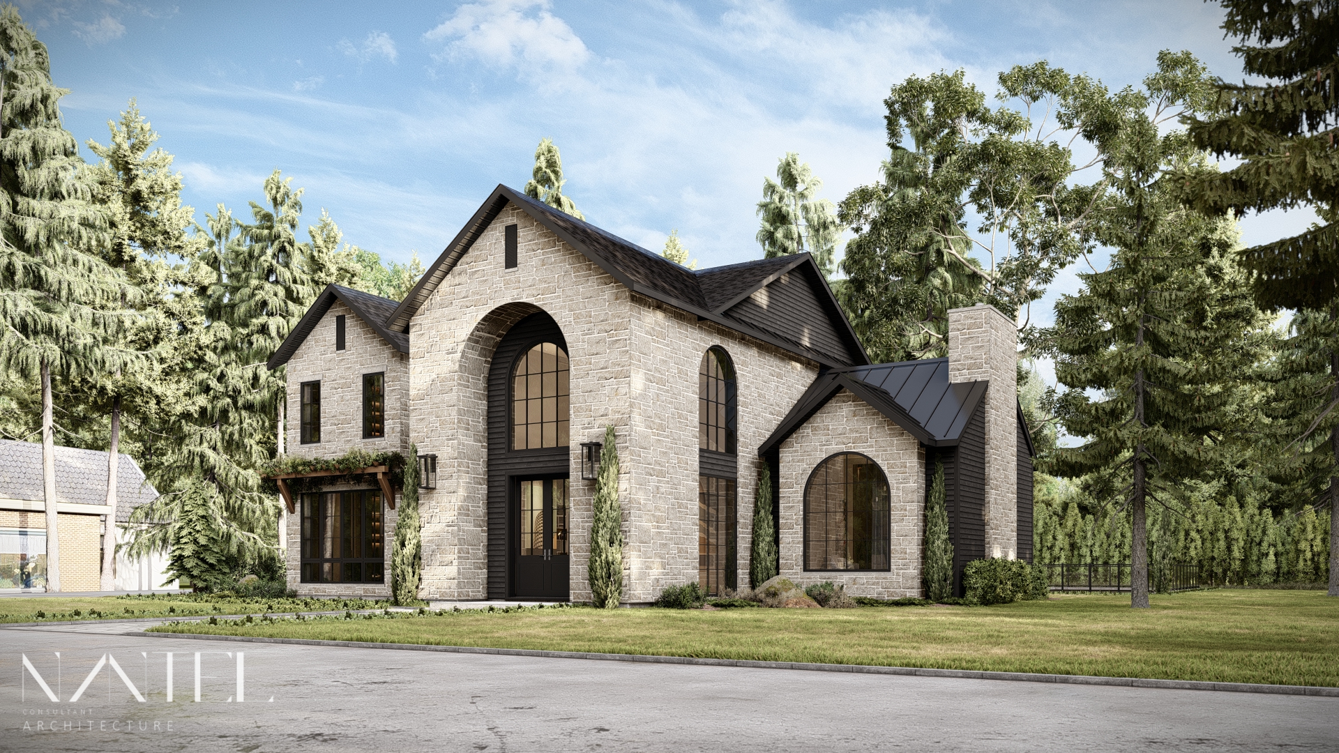 Cette somptueuse résidence allie élégance et modernité, avec une façade en bois noir et en pierre naturelle, créant un contraste raffiné et intemporel. Les multiples arches apportent une dimension architecturale unique et majestueuse, tandis que la combinaison de toit en tôle et de toit en bardeau accentue le style contemporain tout en respectant l’équilibre classique de la maison. Chaque détail a été pensé pour refléter le luxe, le confort et le raffinement, offrant un intérieur lumineux et accueillant ainsi qu’une présence remarquable dans son environnement.